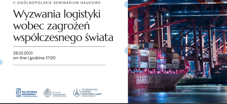 Studenckie Koło Naukowe Logistyków „LogON” funkcjonujące przy Zakładzie Systemów Zarządzania i Logistyki na Wydziale Zarządzania Politechniki Rzeszowskiej serdecznie zaprasza do udziału w II Ogólnopolskim Seminarium Naukowym "Wyzwania logistyki wobec zagrożeń współczesnego świata".