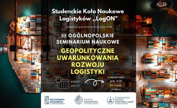 W dniu 04 stycznia 2023 r. odbyło się III Ogólnopolskie Seminarium Naukowe pt. ”Geopolityczne uwarunkowania rozwoju logistyki”. Spotkanie zostało zrealizowane za pośrednictwem platformy MS Teams.