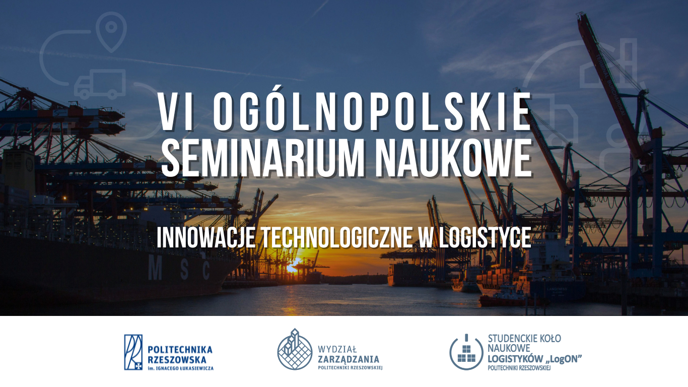 Zakład Systemów Zarządzania i Logistyki Wydziału Zarządzania Politechniki Rzeszowskiej oraz Studenckie Koło Naukowe Logistyków „LogON” serdecznie zapraszają na VI Ogólnopolskie Seminarium Naukowe pt. “Innowacje technologiczne w logistyce”.